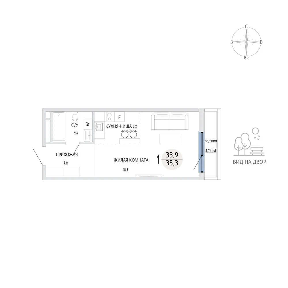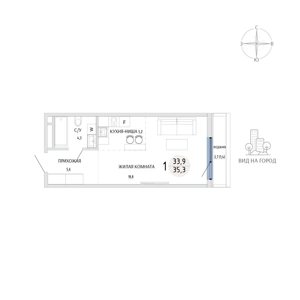 Студия 35.3 м