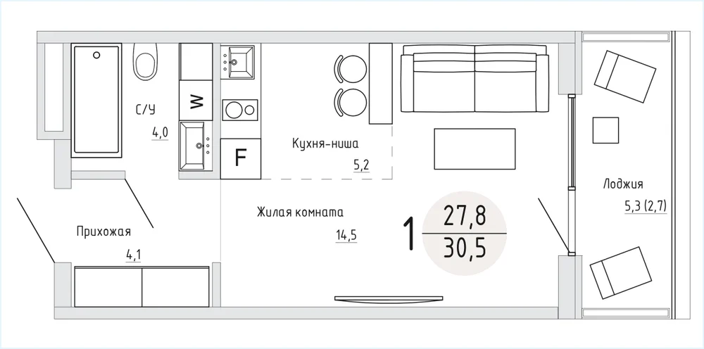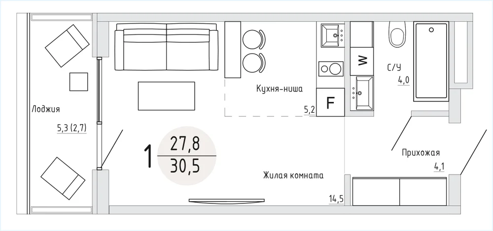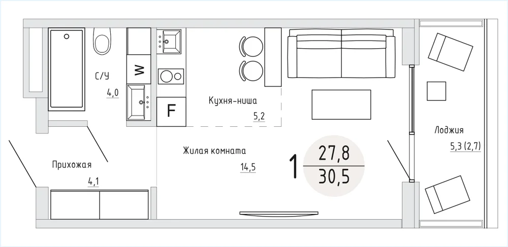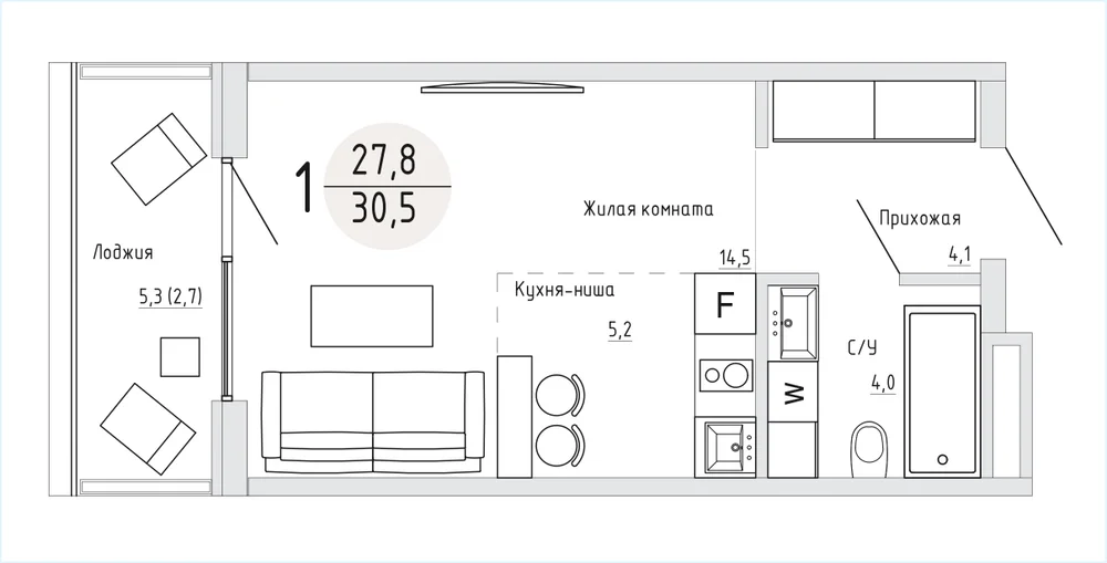 ЖД 1 - Корпус 2, Секция 1, Этаж 5