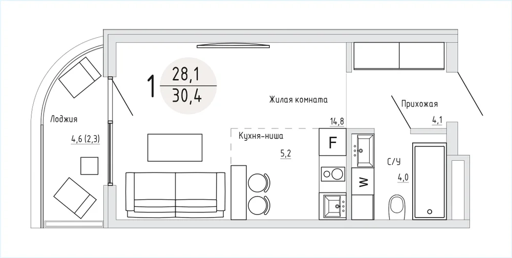 ЖД 1 - Корпус 2, Секция 1, Этаж 4