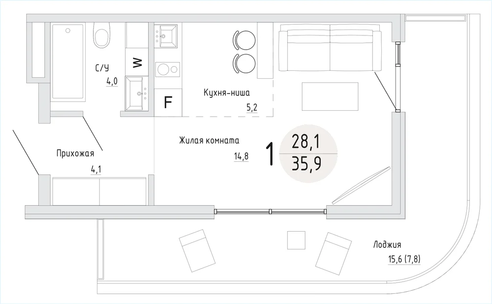 ЖД 1 - Корпус 2, Секция 1, Этаж 6