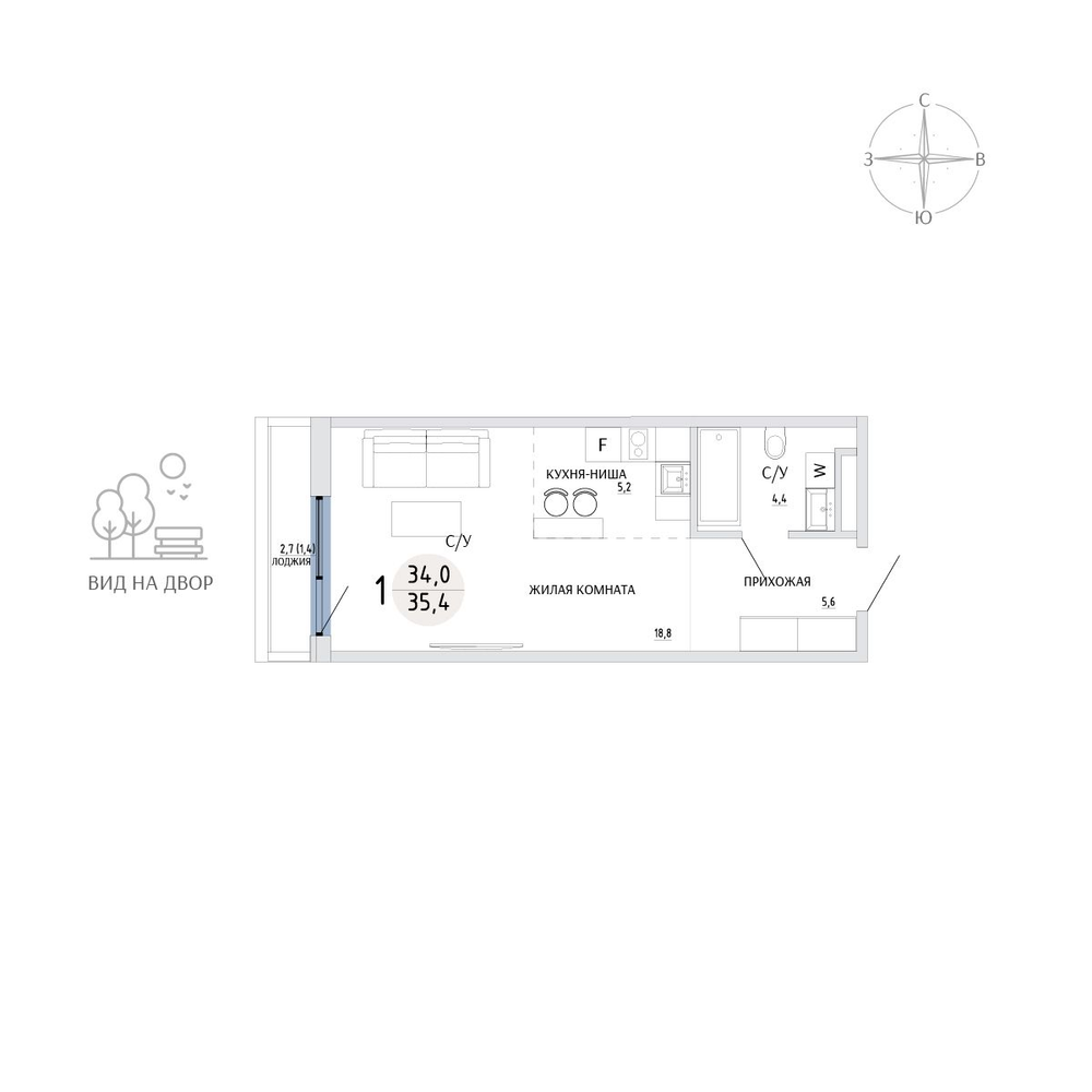 ЖД 1 - Корпус 2, Секция 1, Этаж 8