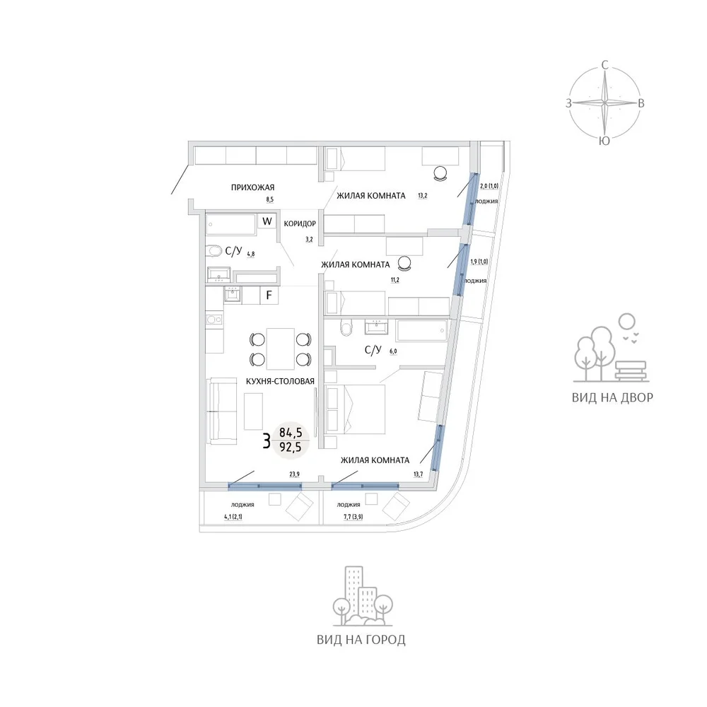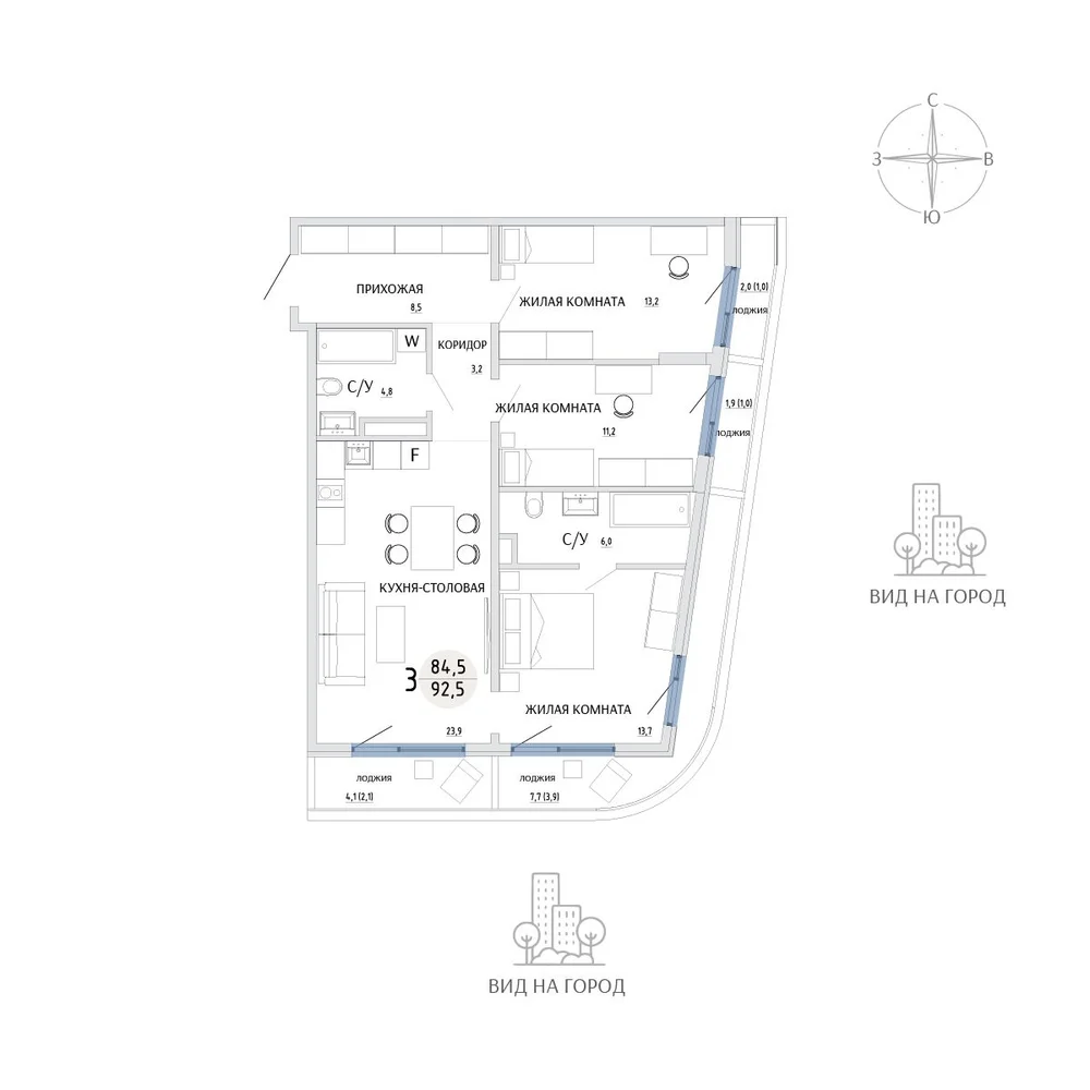 3-комнатная 100.3 м