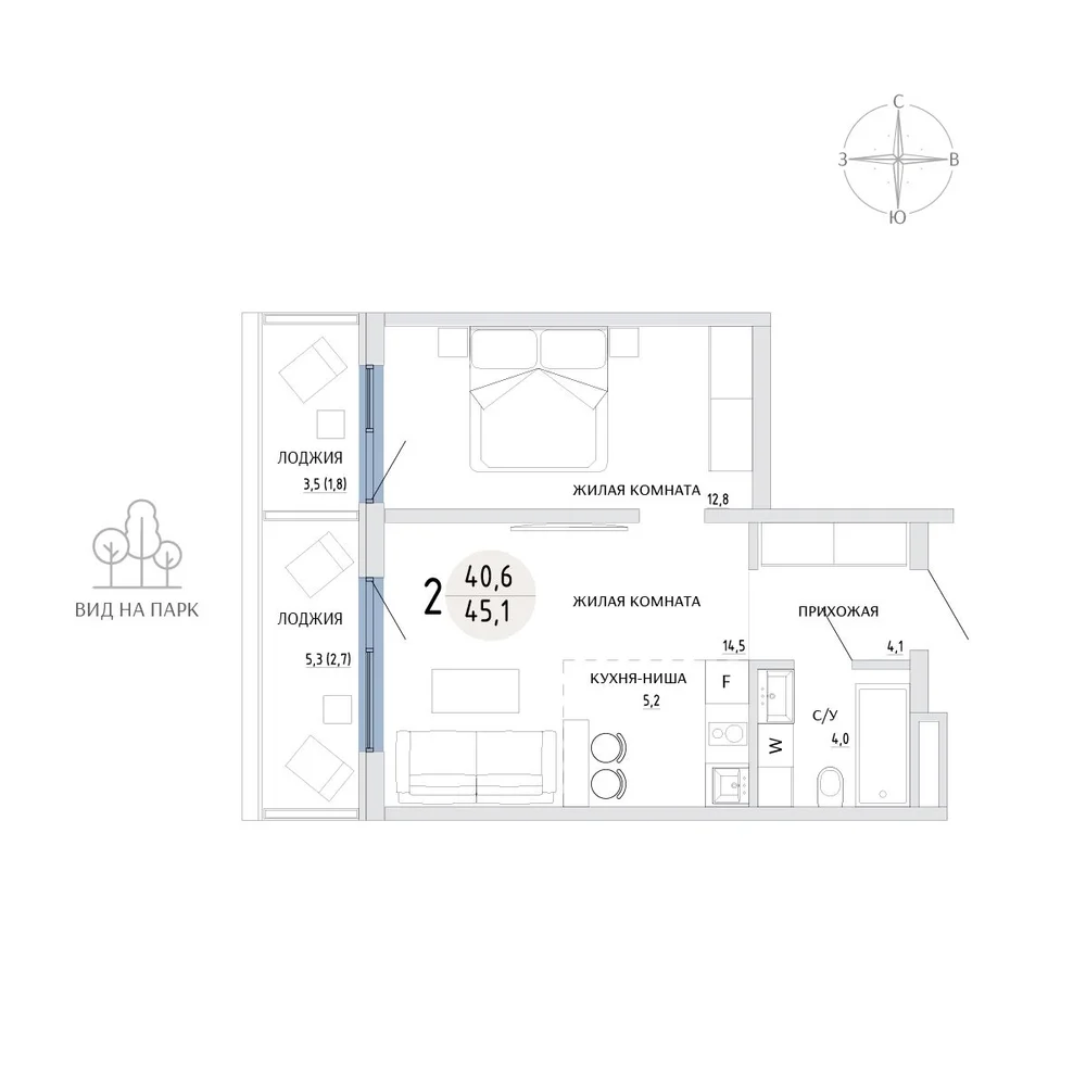 ЖД 1 - Корпус 2, Секция 1, Этаж 5