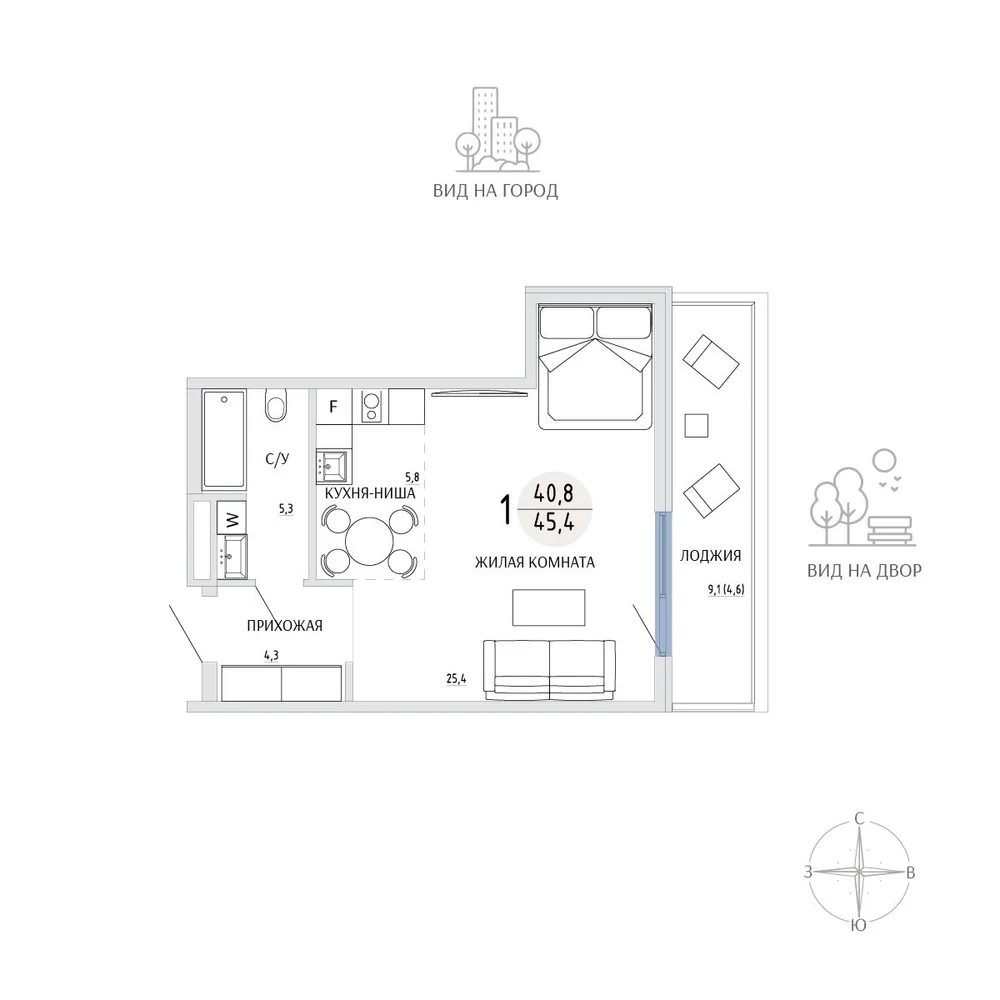 ЖД 1 - Корпус1, Секция 1, Этаж 4
