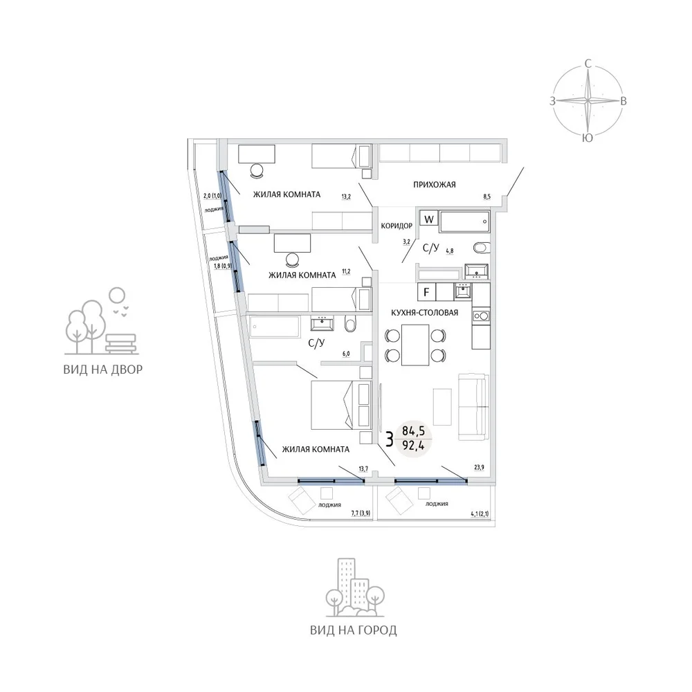 3-комнатная 92.5 м