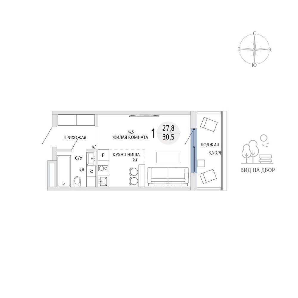 Студия 30 м